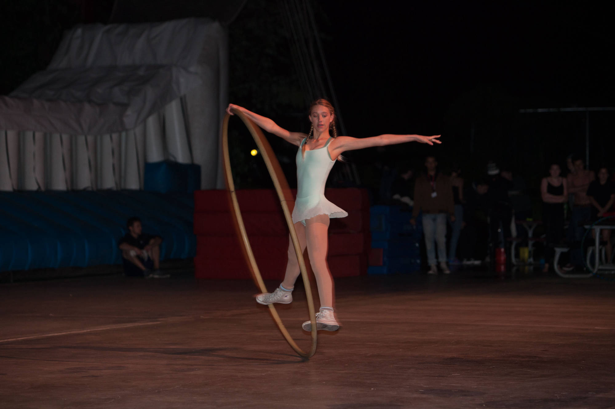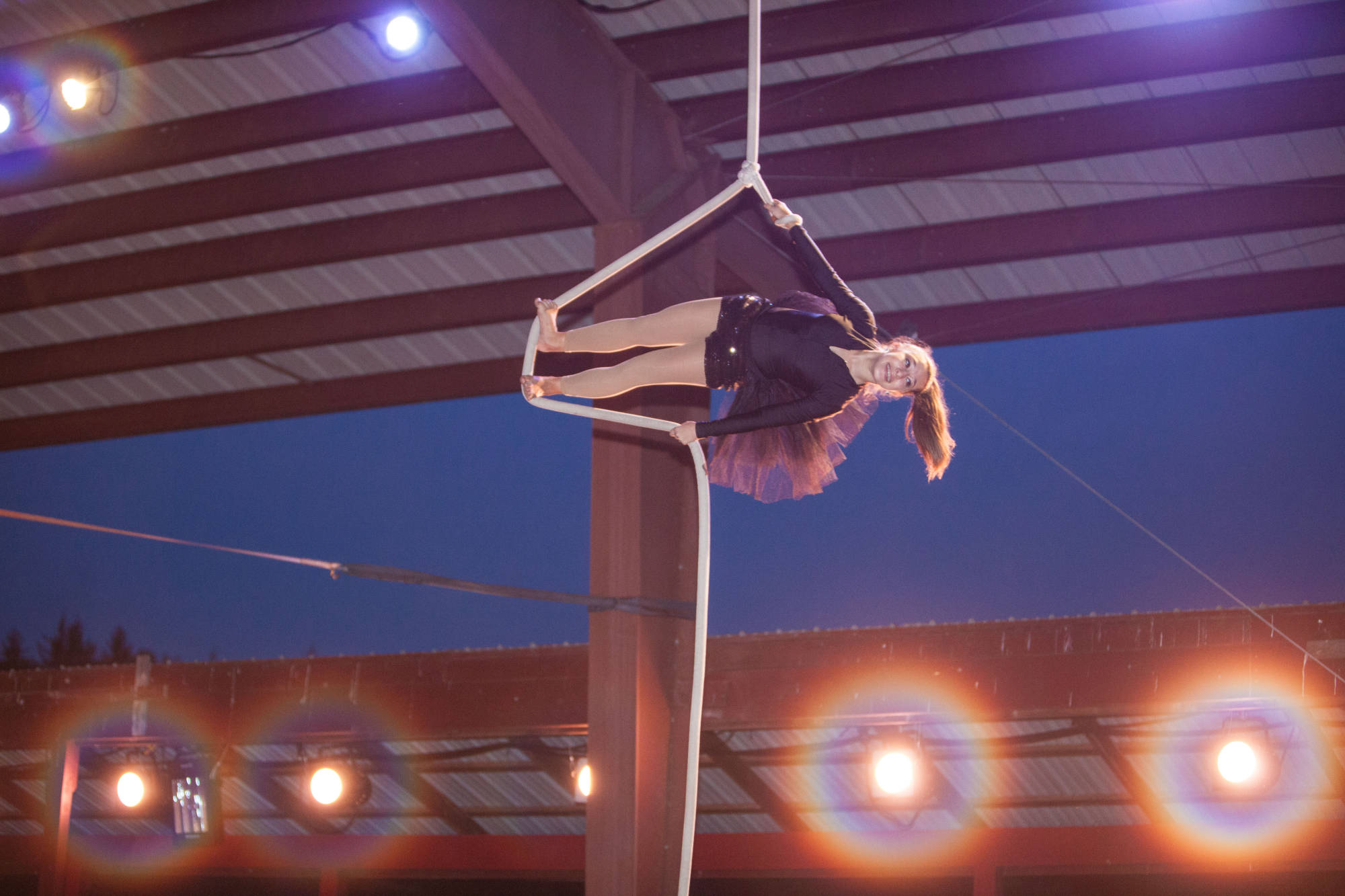 Each Session is capped off with a three full fledged circus performances where parents and friends can watch our campers show off their new skills. There is our main circus show, a late night "firefly" show that features fire twirling and flying Tapeze, and a Jr Circus show in it's own facility for campers 10 and under. We have clowning, tumbling, fire twirling, wire-walking, balancing globes, juggling, stunt bikes, rings, trapeze, triple trapeze , flying trapeze and bungie trapeze, spanish web, silk, ropes and other acts which all perform in an end of session extravaganza. Campers who just want to try new things without participating in the show also have that opportunity.